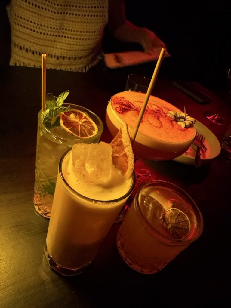Y por supuesto, los cocktails tienen un papel protagonista. La barra tiene mucha personalidad y una carta que acompaña perfecto el clima del lugar: tragos bien ejecutados, frescos y con esa onda que invita a quedarse un rato más.